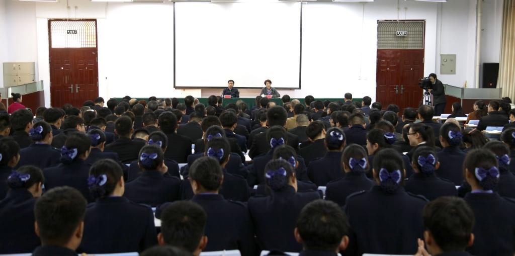 12月7日上午,党的十九大代表、市委书记范修芳莅临学院,在拓新2号楼2楼报告厅向全院广大师生宣讲党的十九大精神。学院党委书记张艾青主持,学院党委委员,副科级以上干部,部分教师、学生代表350余人参加。